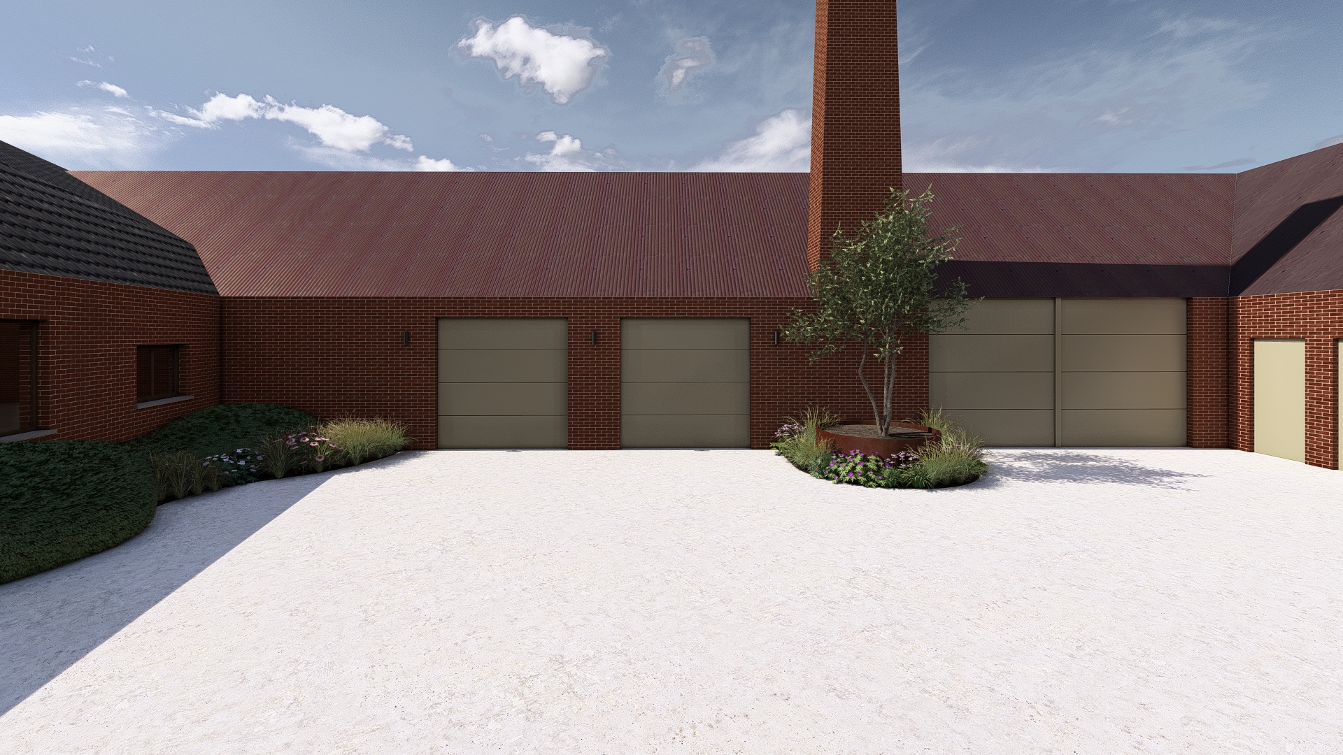 naast de tuin op de binnenkoer is er ook toegang voorzien tot nieuwe garageboxen en de aansluitende loods. Vrienden en andere bezoekers kunnen zich ook parkeren op deze binnenplaats. Praktisch en toch gezellig.